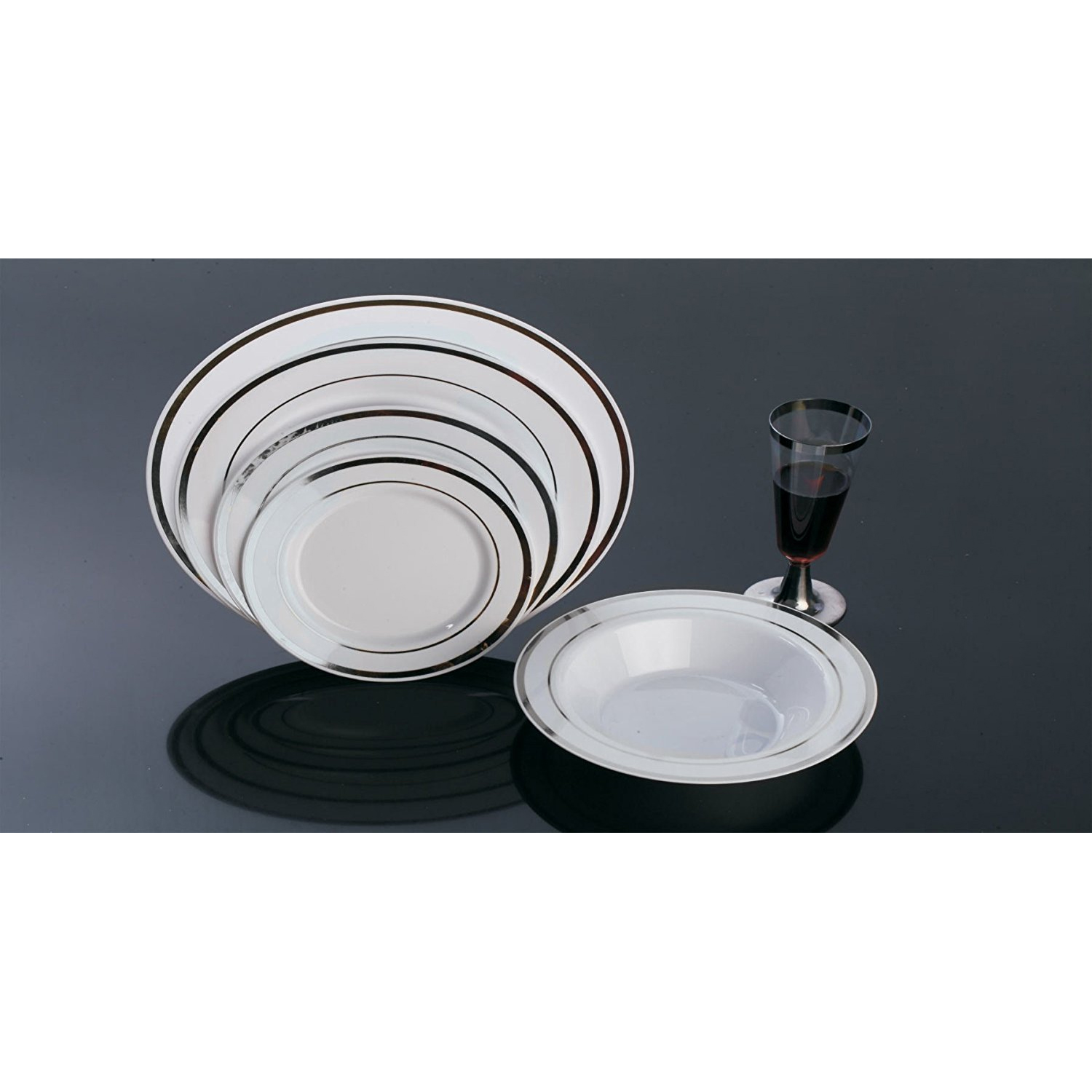 These elegant plastic plates are great for weddings and other events where you need to impress without having to do the dishes afterwards. You will receive total of 50 plates, 20 — 7.5″, 15 — 9″, 15 — 10.25″. Receptions and catered events, Upscale design with disposable or reusable tableware, Made from premium extra heavy duty plastic, Looks Like Real China, Can be Reused, Hand Wash Only.